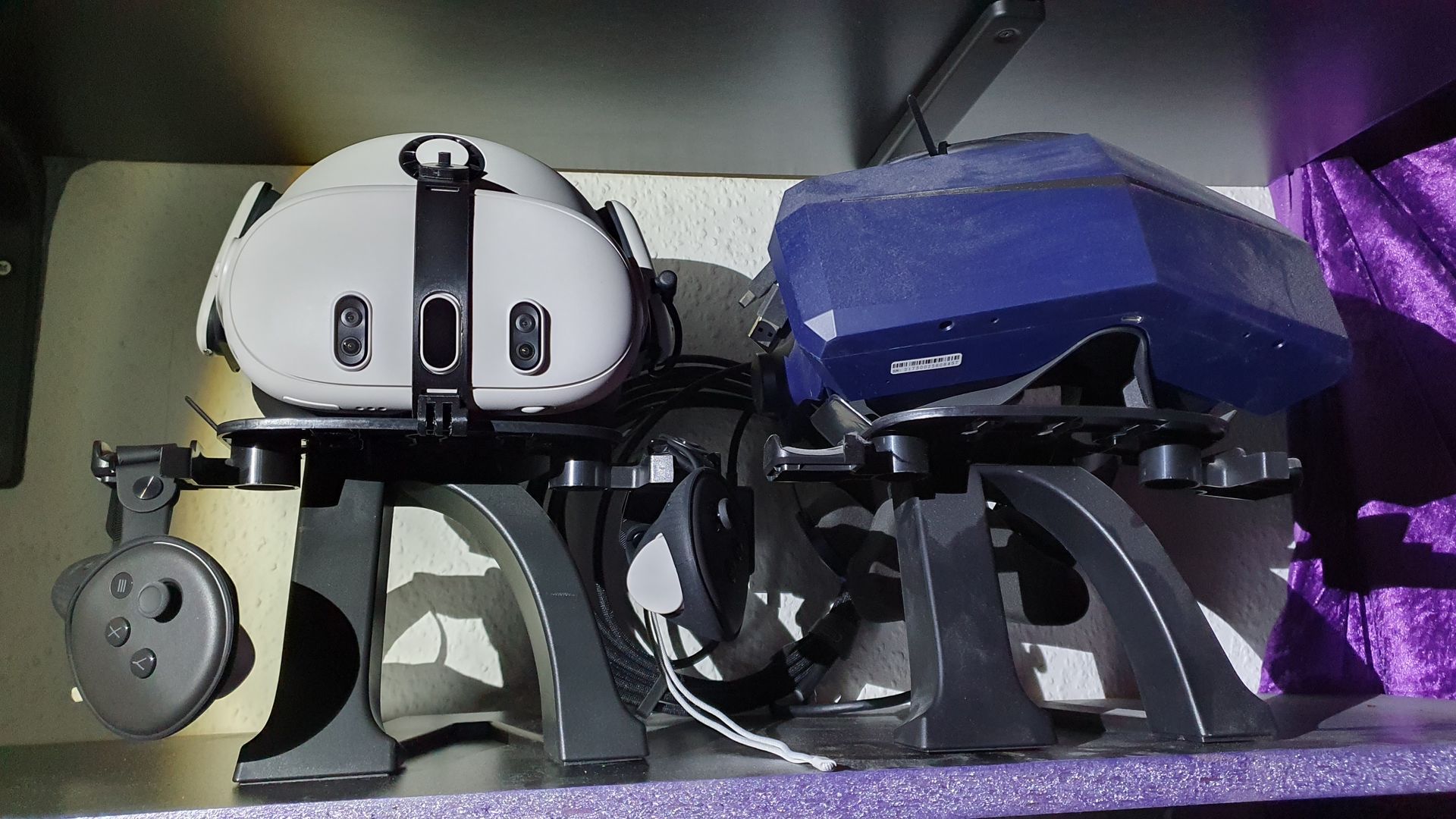 The pandemic hit us all hard. In 2020, going out to parties became impossible, travel was complicated, and we slowly started to feel the effects of cabin fever. During that time, I bought my first VR headset – a Vive 1 – and it completely transformed how I spent my time at home. VR allowed me to escape into virtual worlds, offering something new and exciting far beyond the confines of everyday life. I got an Index in 2021 followed by full body tracking and a friend gifted me his Pimax, because it was too fidgety in his opinion. In 2024 I also added a Quest 3 for a more slim and mobile experience and tried out a haptic vest to translate sounds or touches through vibrations to the skin.